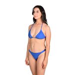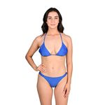 El Corpiño Liso Azul de Mix & Match presenta un diseño clásico y versátil con copas triangulares ajustables que se deslizan sobre una banda, permitiendo un ajuste personalizado y cómodo. Se ata con lazos finos al cuello (estilo halter) y a la espalda, ofreciendo un soporte seguro y adaptable a diferentes siluetas.