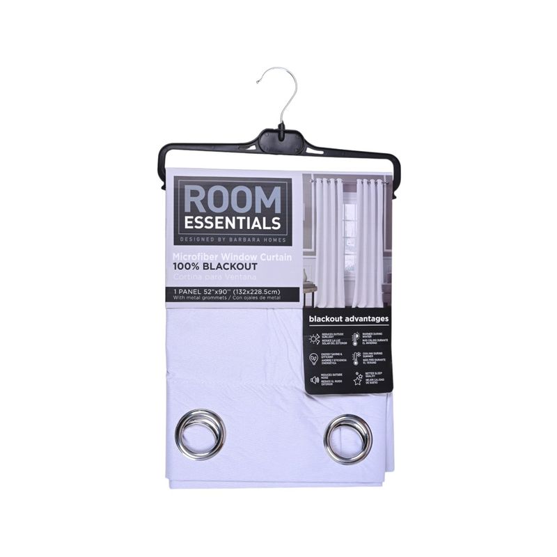 La Cortina Blackout de Room Essentials combina funcionalidad y estética, diseñada para crear espacios modernos y confortables. Su textura en relieve con motivos de hojas aporta un detalle decorativo sutil, mientras que los ojales metálicos integrados facilitan la instalación en cortineros estándar, asegurando un deslizamiento suave y práctico.