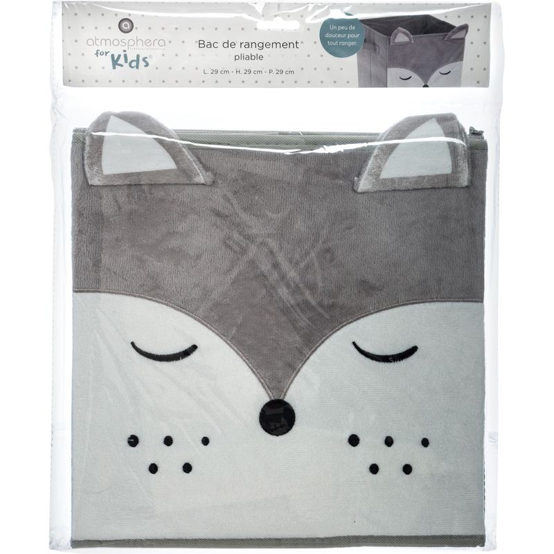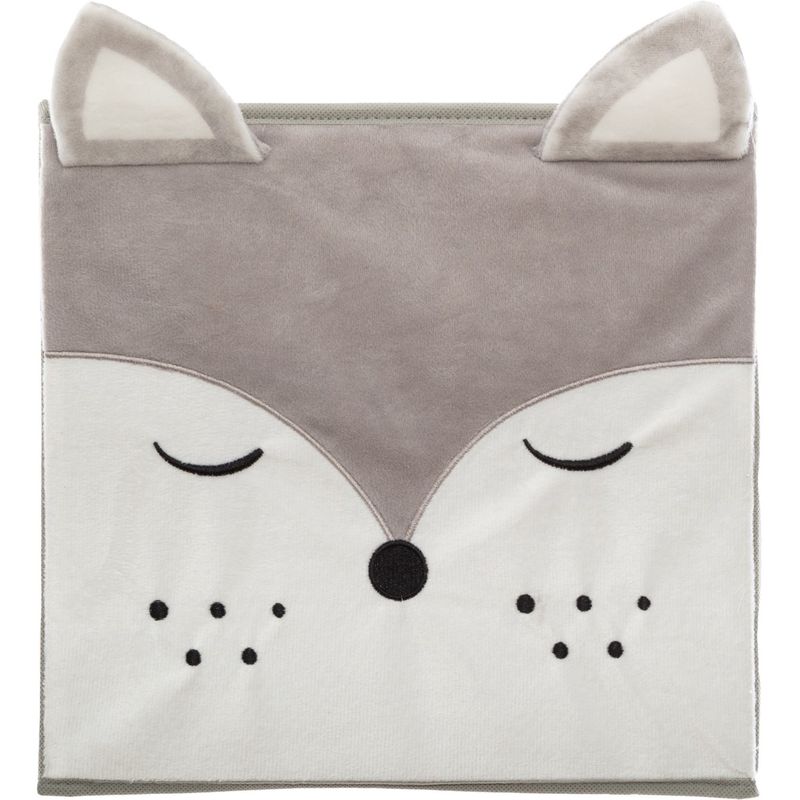 Cesta almacenaje tipo cubo con el frente decorado con la cara de un zorro, perfecta para guardar los juguetes de los niños. Con esta cesta infantil podrás organizar con estilo los armarios y estanterías. Una cesta con estructura plegable recubierta de poliéster.