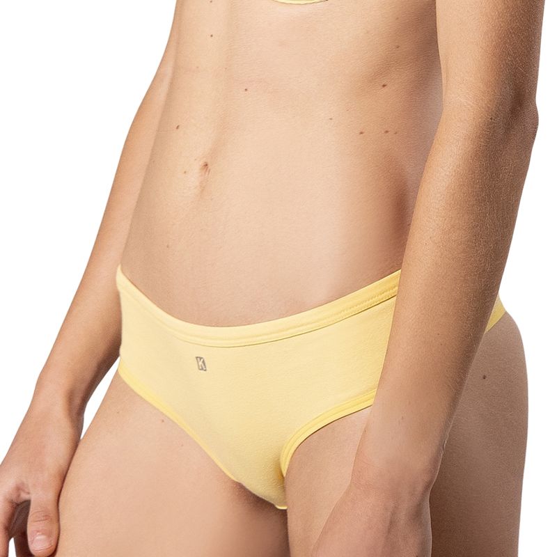 El Culotte Con Diseño Combinado Amarillo Oscuro de Kalua combina la elegancia de un colaless con la cobertura de un culotte, ofreciendo un ajuste cómodo y moderno. Su diseño femenino es ideal para uso diario, brindando discreción bajo cualquier prenda.