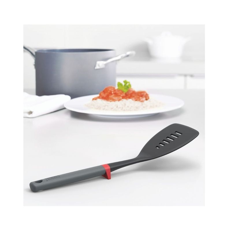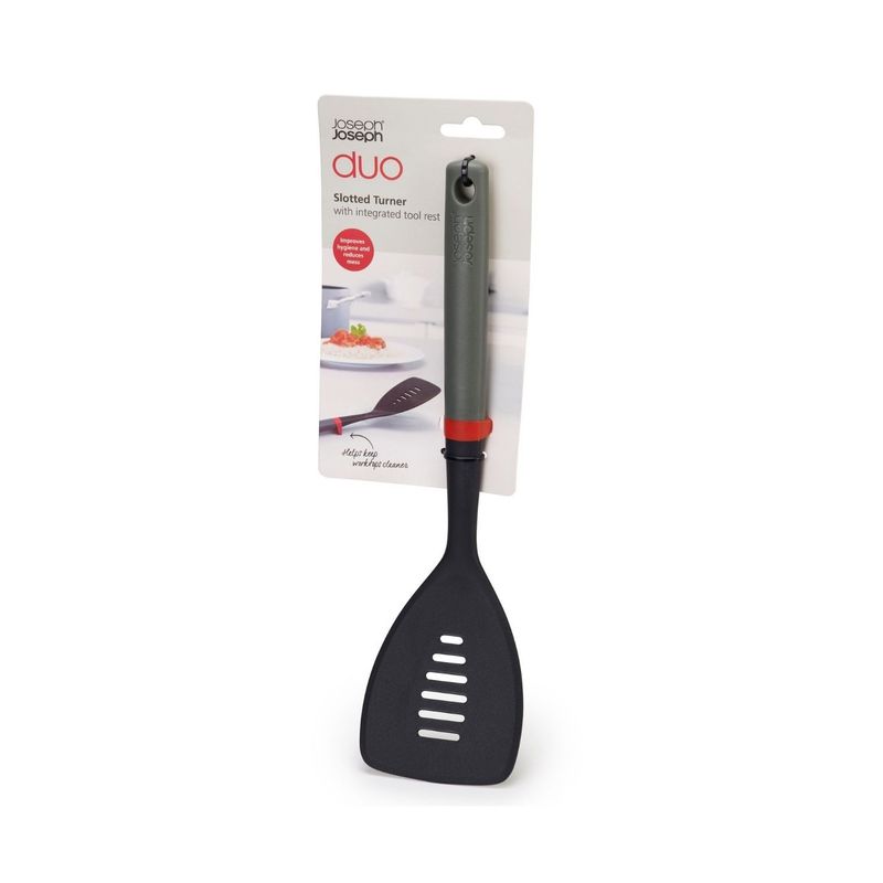Duo Espatula Ranurada – tiene un diseño flexible para facilitar su uso. Cabezal resiste temperaturas de hasta 200 grados y se puede usar con sus utensilios de cocina antiadherentes sin rayarlos.
