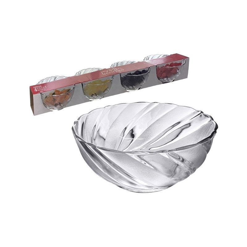 Este set de ensaladeras Twister de 4 piezas y 360 ml cada una es ideal para preparar, servir y almacenar ensaladas y otros alimentos de manera práctica y elegante. Su diseño funcional permite una manipulación cómoda y segura, siendo perfecto para uso diario en el hogar, reuniones familiares o eventos.