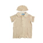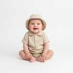 • Mameluco corto estilo polo en color beige con cuello clásico y botones frontales para mayor practicidad
