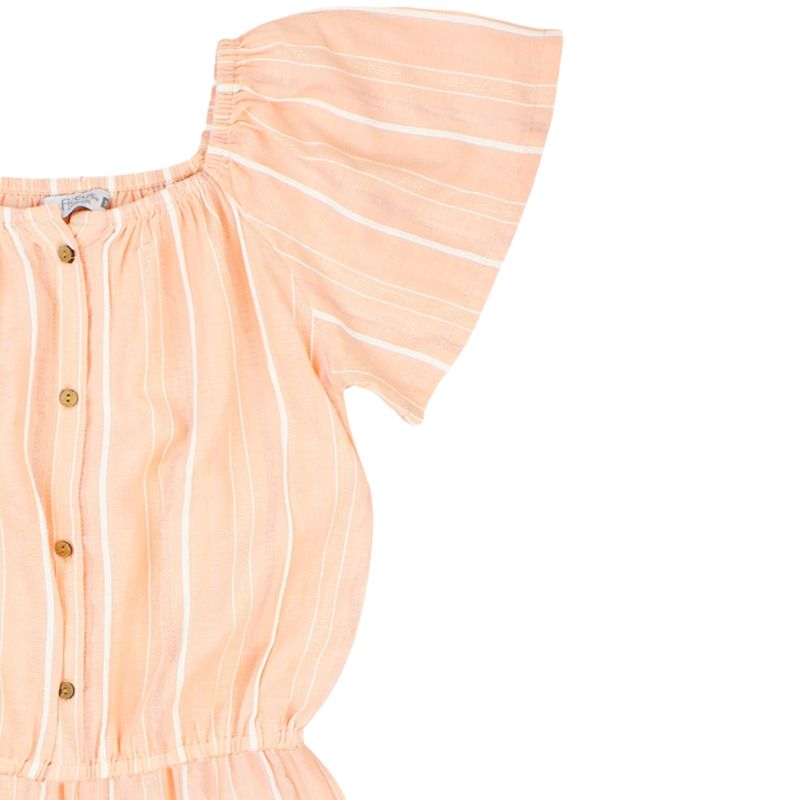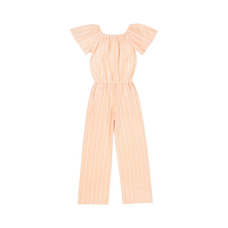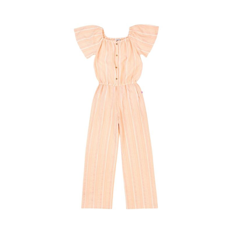 El Enterito Rayas Essence Naranjo Niña Ficcus es una prenda fresca y moderna, diseñada especialmente para niñas con estilo urbano y cómodo. Su escote elástico tipo bardot deja los hombros al descubierto, aportando un toque delicado y femenino, mientras que las mangas cortas fruncidas añaden volumen y detalle sutil. La cintura elástica garantiza un ajuste cómodo y adaptable, favoreciendo la libertad de movimiento durante todo el día.