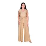 El Enterizo Palazo Plisado Dorado Mujer L'exclusif es una prenda sofisticada que fusiona elegancia y modernidad en una sola pieza. Su diseño tipo palazo, con pierna ancha y caída fluida, brinda comodidad y un movimiento natural que estiliza la silueta.