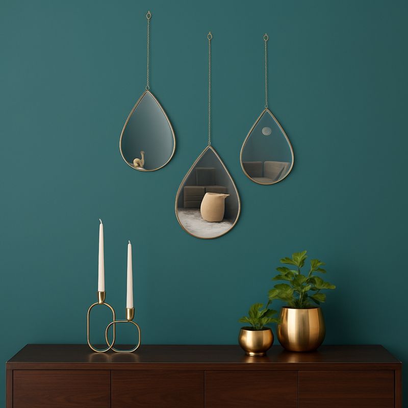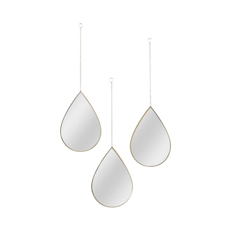 El pack incluye tres espejos colgantes de forma de gota.