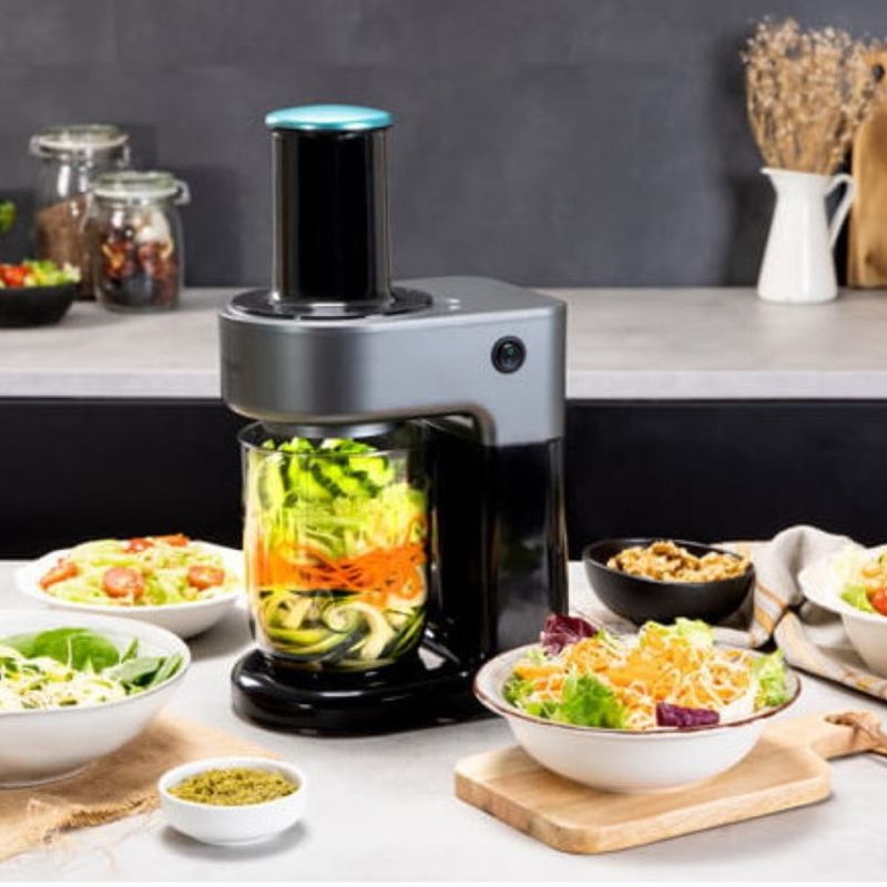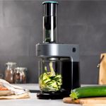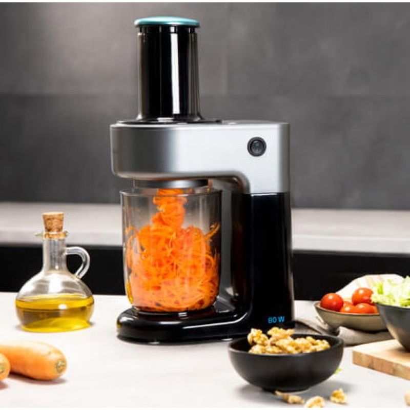 Cecotec Espiralizador de verduras Spiralchef 400 de 80 W con 4 cuchillas de acero inoxidable de diferente tamaño para cortar frutas y verduras en espiral y canal de entrada ancho.