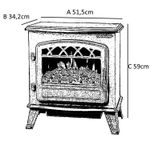 950 / 1850 Watts. Teniendo la apariencia de antiguas salamandras a leña, esta estufa eléctrica es decorativa al mismo tiempo que proporciona importante calor regulable. Efecto llamas en 3D. El efecto de llamas puede usarse independientemente.