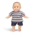 Mark es un muñeco muy bonito, con una tierna cara, que tiene ganas de pasarlo en grande con los más pequeños de la casa. ¡Su conjunto es monísimo! Lleva un bonito pantalón tejano y una camiseta de manga corta a rayas.