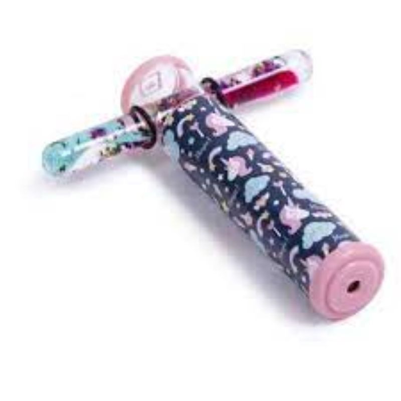 La palabra caleidoscopio está formada por tres palabras griegas que juntas significan "observar una imagen hermosa". Con este caleidoscopio tematizado en los unicornios, los peques aprenderán sobre la distorsión óptica, y la manera en que gracias al juego de lentes, se crean efectos ópticos.