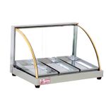 Esta diseñado totalmente en acero inoxidable, con acabado y bandejas de acero inoxidable brillante; resistencia blindada; termostato. Ideal para exhibir empanadas u otros alimentos calientes. Economía con elegancia.