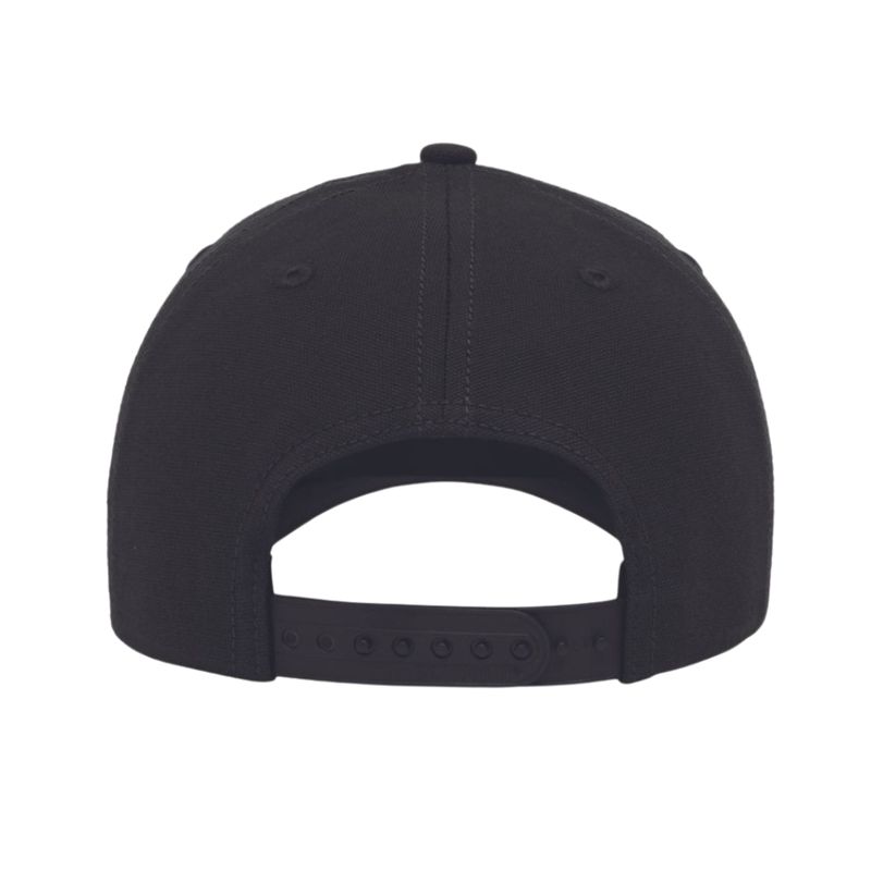 Sistema de ajuste: Cierre trasero tipo snapback de plástico negro, que permite una adaptación precisa a distintos tamaños de cabeza, brindando confort durante todo el día.