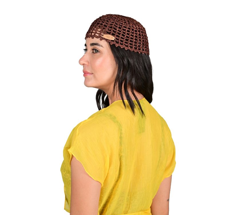 El Gorro Tejido A Crochet Chocolate para Mujer es una pieza artesanal que combina moda, confort y autenticidad. Su diseño cuidadosamente elaborado a mano ofrece un estilo bohemio y natural que se adapta a diferentes tipos de looks, desde los más relajados hasta los más sofisticados. Este gorro cubre la parte superior de la cabeza y la frente, aportando un aire desenfadado, juvenil y elegante al mismo tiempo. Gracias a su estructura tejida tipo red, deja entrever sutilmente el cabello, logrando un efecto liviano y veraniego que realza la feminidad y el encanto de quien lo usa.