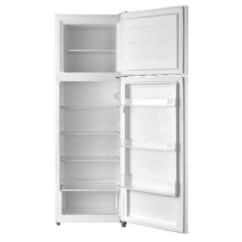 La heladera Tokyo tiene un diseño elegante y moderno, cuenta con dos puertas, estantes regulables de vidrio templado, cajón de frutas y verduras de acrílico de cristal de alta resistencia, luz interior, control de temperatura y una parrilla en congelador.
