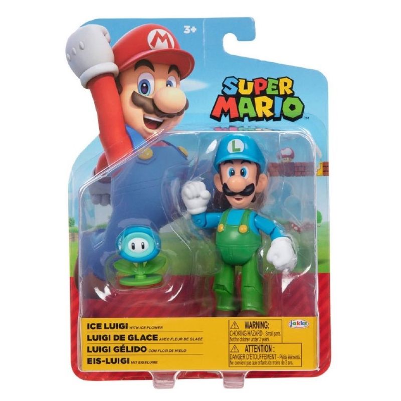 Jakks ntnd super mario fig 4" luigi con flor de hielo