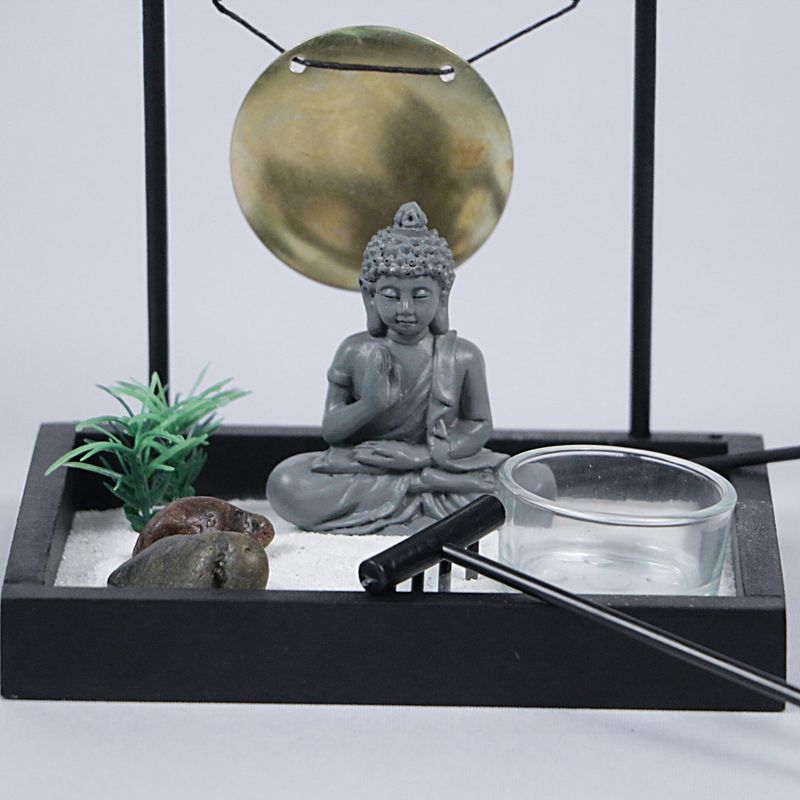 Tal y como se ve en la imagen; el set incluye: PIEDRAS, 1 PORTA VELAS, 1 GONG, ARENA