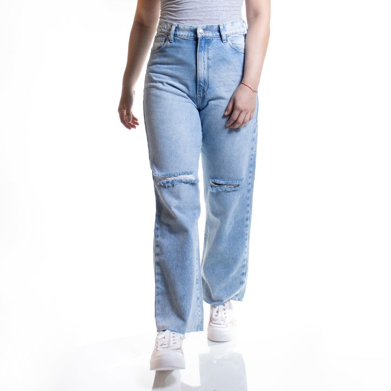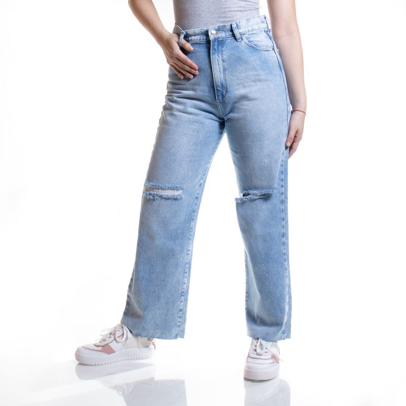 Jeans Azul Claro Full Length Fit Tiro Alto Tiare