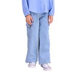 El jeans cargo de corte wide celeste para niña de la marca Stitches es una prenda con diseño moderno y funcional, ideal para niñas activas que buscan comodidad sin renunciar al estilo. Su silueta amplia y relajada ofrece libertad de movimiento, mientras que el color celeste aporta un toque fresco y actual.