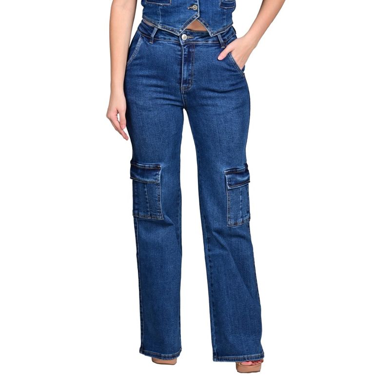 El Jeans Medio Cargo Fit Tiro Azul Oscuro Mujer Tiare ofrece un equilibrio perfecto entre funcionalidad y estilo urbano. Presenta un tiro alto y corte recto ligeramente acampanado, ideal para estilizar la figura, junto con grandes bolsillos de parche laterales en los muslos que aportan un toque moderno y práctico. Este diseño es perfecto para quienes buscan un look casual con carácter.