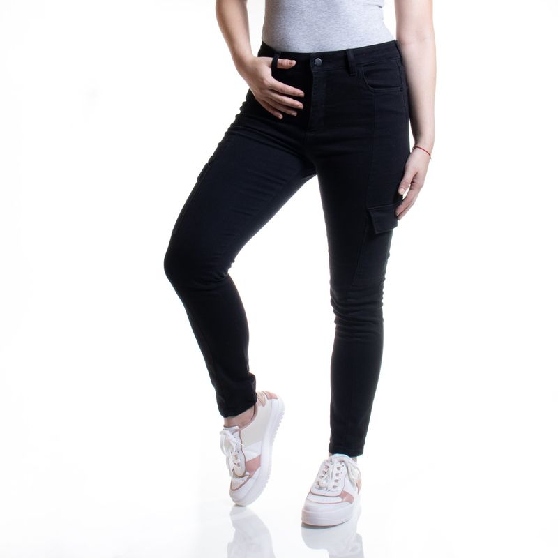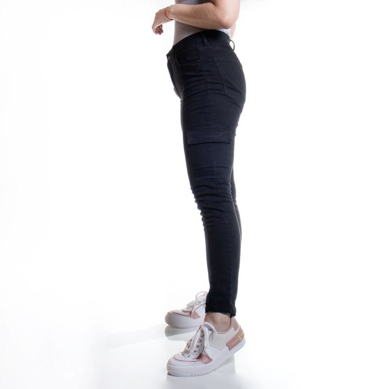 Jeans Negro Cargo Skinny Fit Tiro Medio Tiare