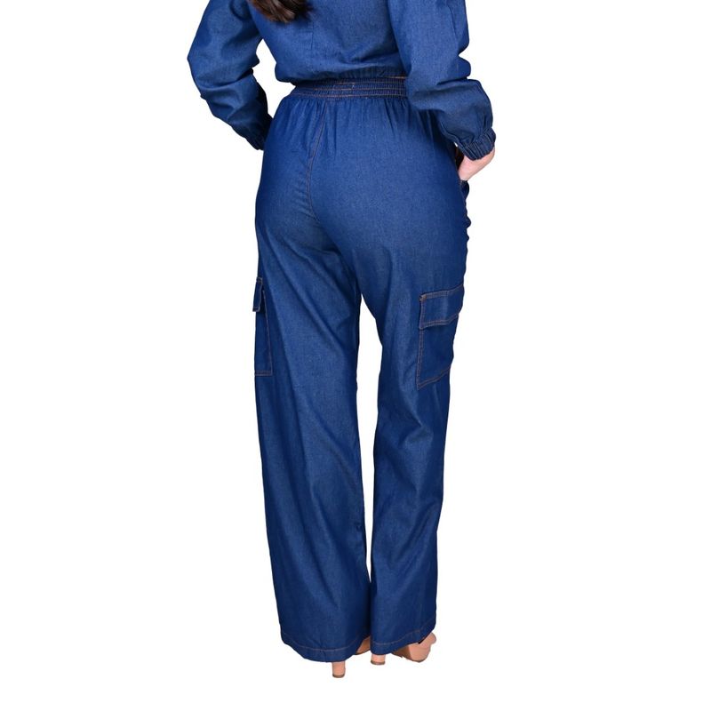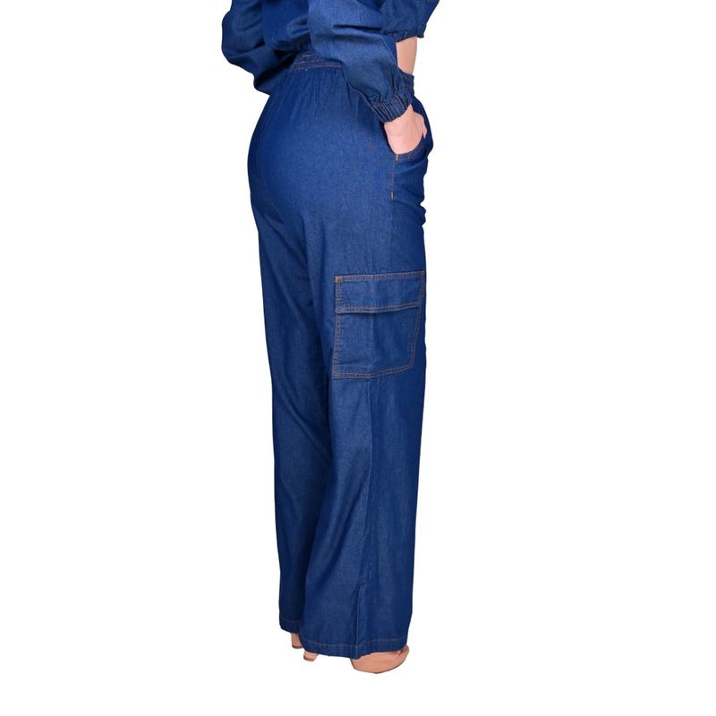 Perfecto para el día a día, salidas casuales, actividades urbanas o reuniones informales. Su color azul cápsula y diseño cargo con corte palazo permiten combinar con múltiples prendas y accesorios, creando outfits modernos, funcionales y elegantes.