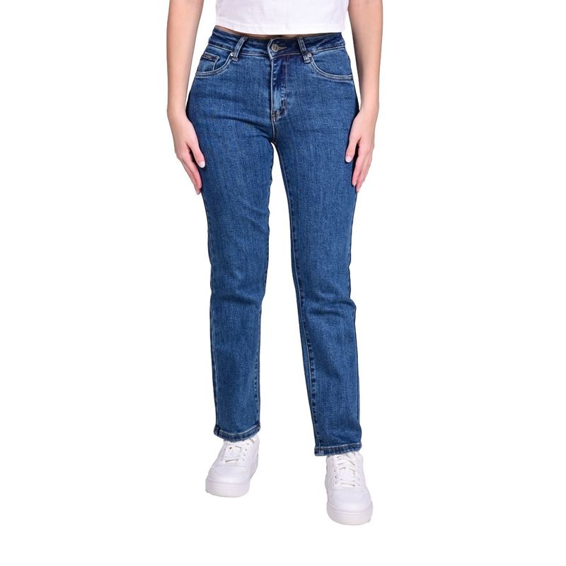 El lavado azul uniforme con ligero fading en los muslos aporta un toque casual y contemporáneo, manteniendo la elegancia del denim. Su largo al tobillo permite lucir el calzado y combinar con distintos estilos, desde champion hasta zapatos más formales.
