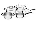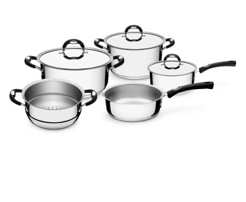 Comodidad y seguridad con la batería de cocina Duo Silicone. La batería de cocina Tramontina de acero inoxidable fondo triple 5 piezas tiene asas y mangos revestidos de silicona antitérmica, que le dan suavidad al manejo y evitan quemaduras. Posee fondo triple (acero inoxidable + aluminio + acero inoxidable) distribuye el calor uniformemente, proporcionando una cocción más rápida, ahorrando energía y dejando los alimentos calientes por más tiempo.
