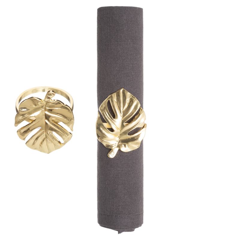 - Juego de anillos para servilleta palmera dorada, viene en 2 piezas