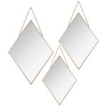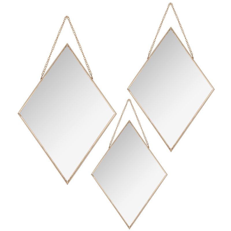 - Juego de espejos diamantes, con bordes dorados, 3 piezas