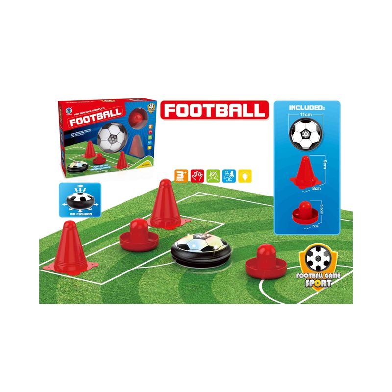 Este juego de fútbol de aire para interiores está diseñado para simular la dinámica del hockey de aire, ofreciendo diversión y entretenimiento dentro del hogar. Incluye un disco flotante de 11 cm con diseño de balón y cuatro conos de entrenamiento de 9 cm de alto para delimitar un campo de juego con porterías, promoviendo la coordinación y la puntería. El diseño y color del juguete pueden cambiar según el stock disponible.