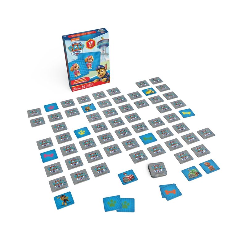 El set incluye 72 piezas con ilustraciones de Paw Patrol, pensadas para facilitar el agarre y la manipulación por manos pequeñas. El objetivo del juego es emparejar las tarjetas correspondientes, favoreciendo la memoria, la atención y la percepción visual en cada partida.