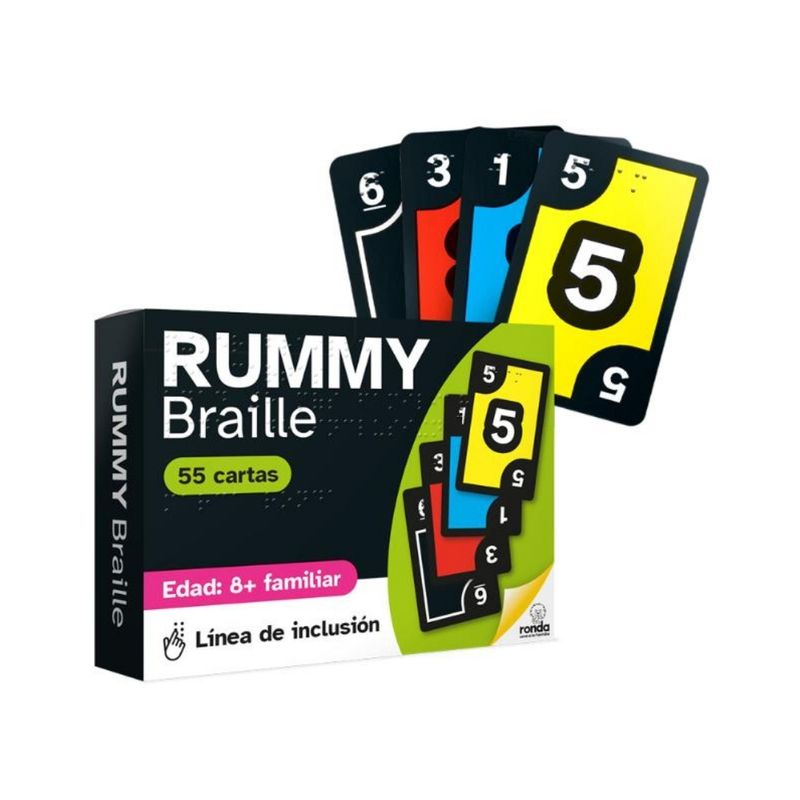 Juego De Mesa Rummy Braille de Ronda es un juego educativo y recreativo diseñado para combinar diversión con aprendizaje del sistema Braille. Ideal para niños mayores de 5 años y adultos, permite que jugadores videntes y no videntes compartan la experiencia de manera inclusiva, desarrollando habilidades cognitivas y sensoriales mientras disfrutan de partidas de Rummy.