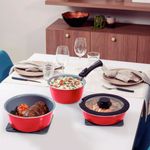 Mango y agarradores en material antitérmico, que ofrecen seguridad durante la manipulación.