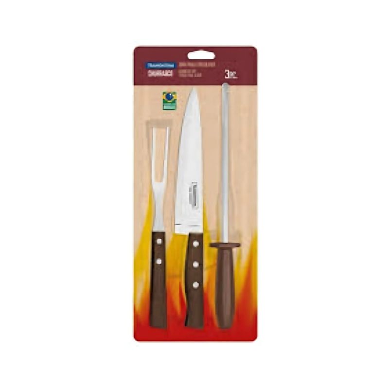 Este práctico juego para asado incluye 3 piezas esenciales que facilitan la preparación y el manejo de carnes a la parrilla, ideal para quienes buscan funcionalidad y calidad en sus herramientas para asado.