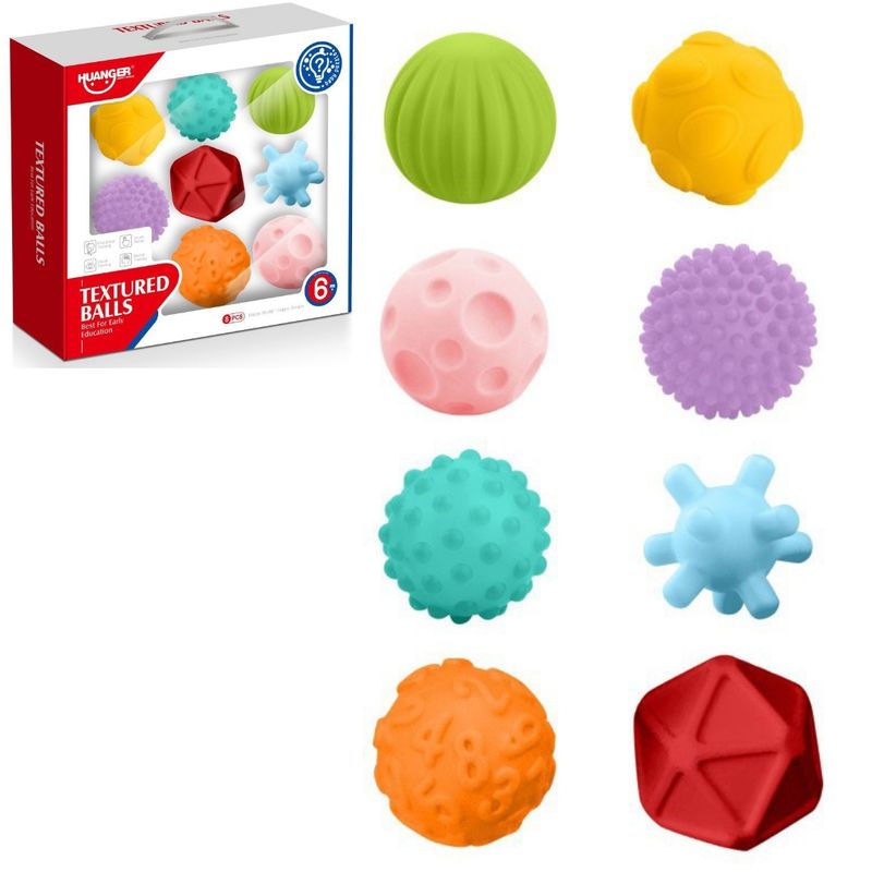 Estilo y Diversión: Este set de 8 juguetes para bebé está diseñado para ofrecer entretenimiento seguro y estimular el desarrollo temprano. Cada pieza permite que los niños exploren texturas, formas y colores, promoviendo la curiosidad y el aprendizaje desde los primeros meses de vida.