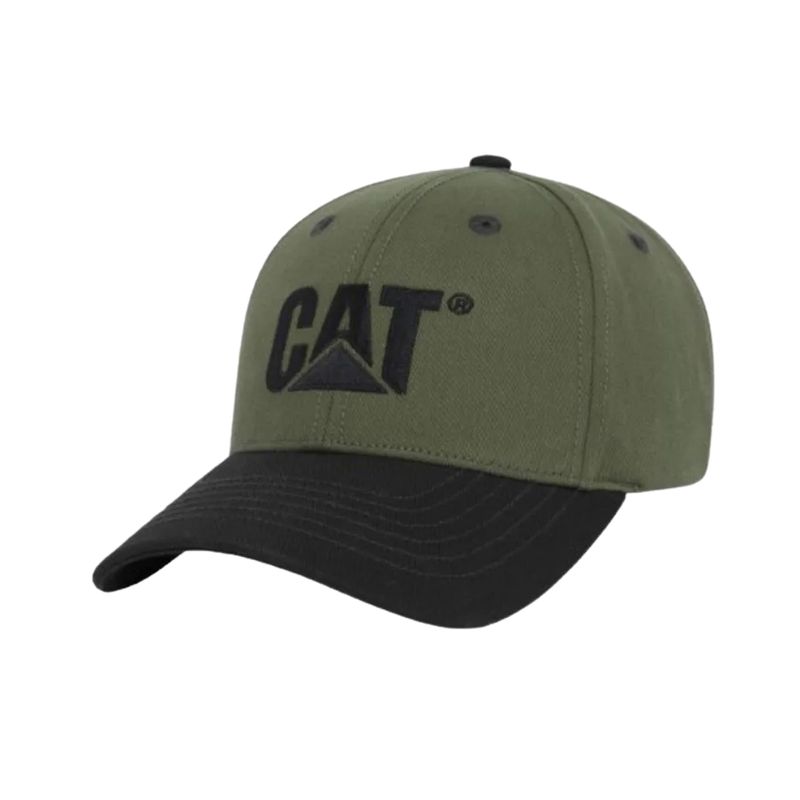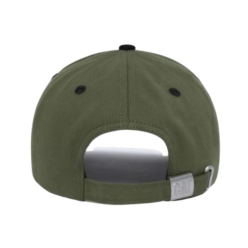 El logo frontal bordado o estampado refuerza la estética Caterpillar, brindando un acabado visual sólido que resalta sobre ambos colores disponibles.