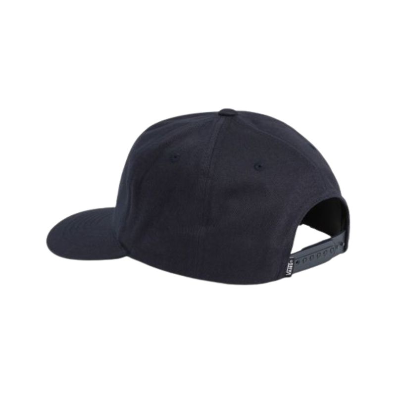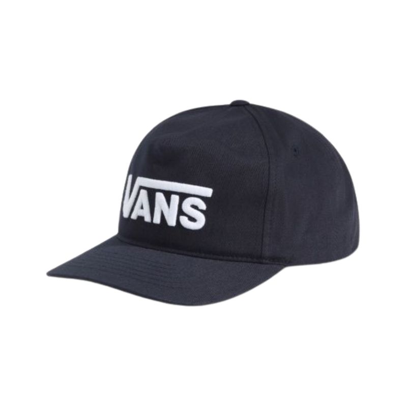 El logotipo icónico de Vans, en estilo Drop V, está bordado en relieve 3D de color blanco, generando un alto contraste que resalta sobre el fondo negro y aporta identidad inmediata a cualquier outfit. Su diseño tipo snapback permite un ajuste personalizado, brindando comodidad durante todo el día.