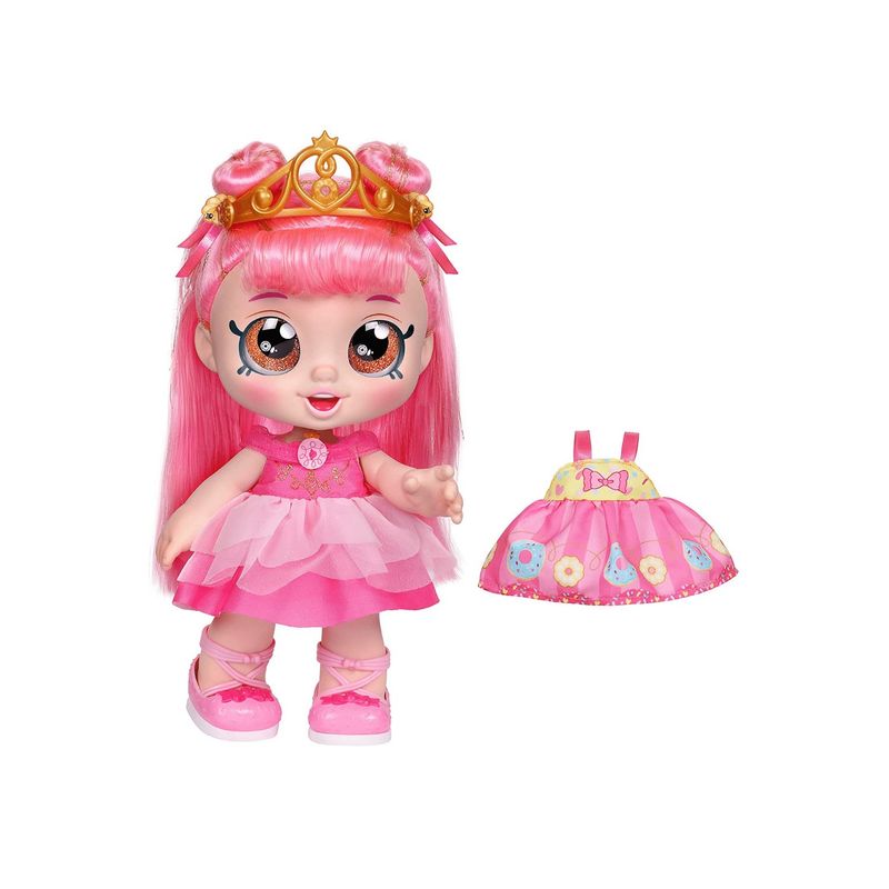 ¡Yey! ¡Juguemos Dress Ups! ¡Los Kindi Kids han vuelto y están listos para divertirse! Es hora de vestirse en el Rainbow Kinder y a estas niñas les encanta fingir que llevan sus adorables atuendos. ¡Donatina es una "amiga de vestir" de Kindi Kid! Esta adorable muñeca de preescolar incluye 2 lindos atuendos: un elegante vestido de princesa y tiara y un vestido de recreo. Esta D'Lish Princess está lista para un día de fantasia