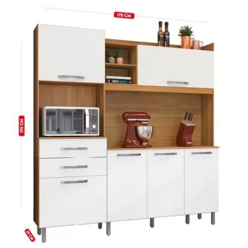 Este kit incluye seis puertas y dos cajones con corredizas metálicas, que facilitan el acceso y ofrecen un deslizamiento suave y seguro. Su diseño contempla espacio para horno y microondas, así como tampo superior resistente, apto para soportar pileta. Las patas de plástico con altura regulable permiten nivelar el mueble sobre cualquier superficie, garantizando estabilidad y seguridad.