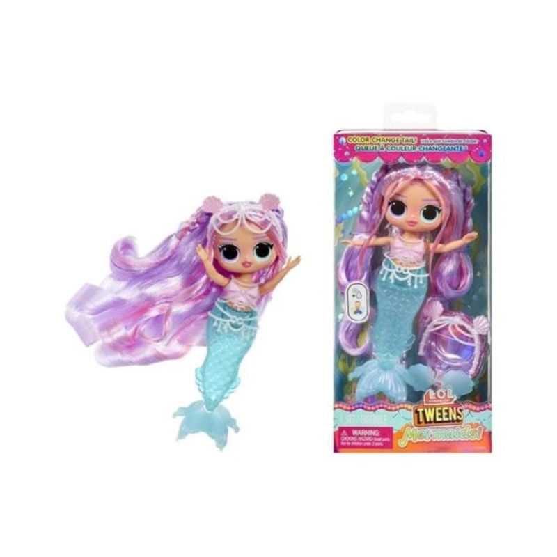 ¡Sumergite en un mundo mágico! Su cola cambia de color al sumergirla en agua fría, pasando de azul aqua a morado perla, y su aleta también cambia de color. La aleta se mueve de un lado a otro, agregando diversión al juego. Incluye accesorios encantadores como gafas de mar, tiara de concha y perlas, y un top con perlas. Lana Marine tiene un look de sirena impresionante y es articulada, permitiendo crear múltiples poses, incluso se puede sentar y pararse sobre su aleta para mayor estabilidad.