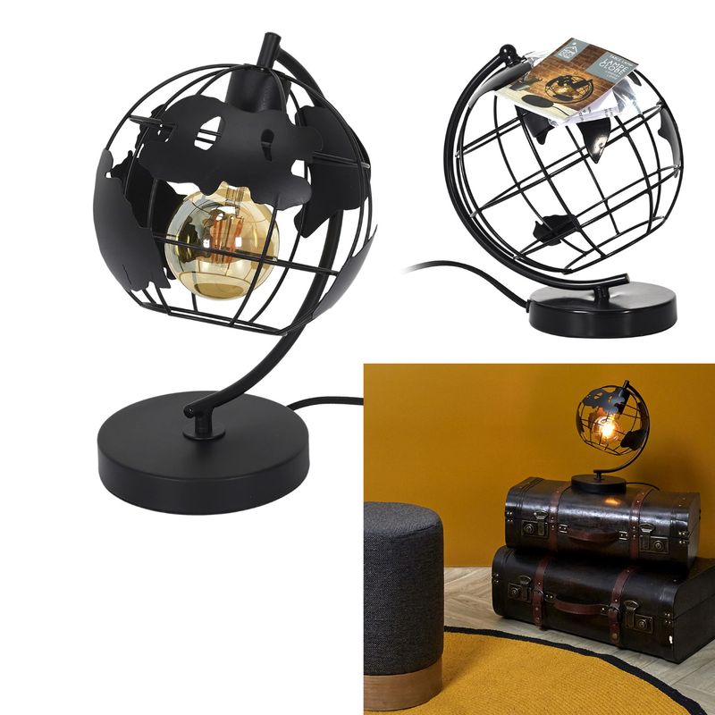 Lámpara con forma de globo terraqueo.