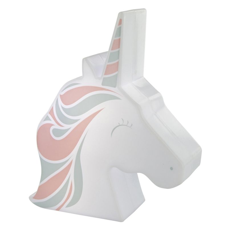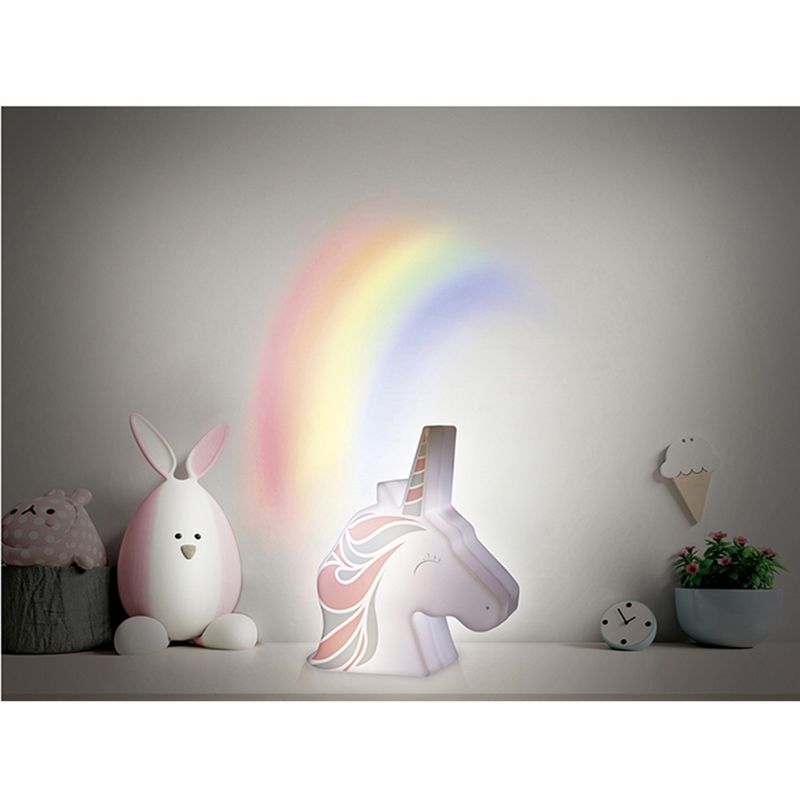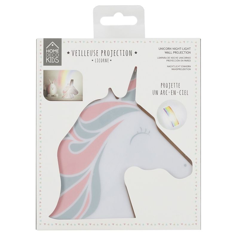 Para una noche suave opta por la luz nocturna de unicornio. Proyecta un arco iris y decora una habitación infantil. Fabricado en plástico ABS, funciona con 3 pilas AAA LR03 no incluidas y dispone de un interruptor de encendido/apagado.
