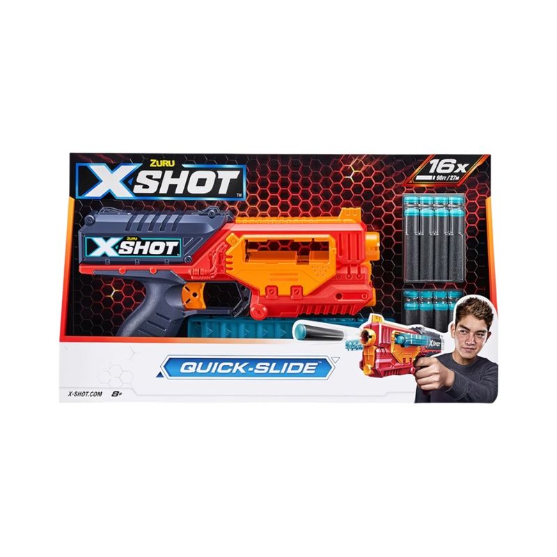 Zuru, marca reconocida a nivel mundial por su innovación en juguetes, ofrece con el X-Shot Quick Slide una opción ideal para niños y jóvenes que disfrutan de la acción rápida y el juego competitivo. Perfecto para actividades al aire libre, torneos entre amigos o simplemente para disfrutar de horas de entretenimiento seguro.