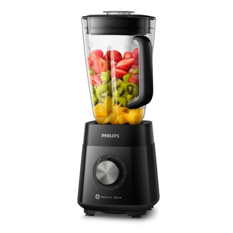 Potencia de motor de 1200 W Capacidad de la jarra de 3 L Cuchillas desmontables 5 velocidades Tecnología ProBlend 6 para obtener licuados perfectos Material de la carcasa: Plástico Material de la jarra: Plástico Material de las hojas: Acero inoxidable