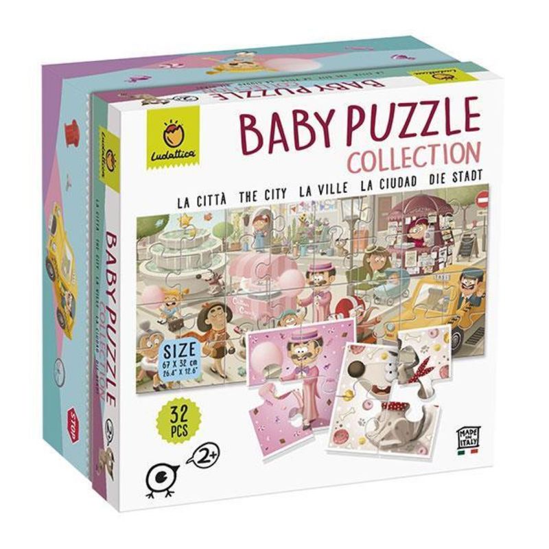 Puzzle de 32 piezas para formar una bonita ciudad. Los más pequeños se divertirrán mucho formando uno de sus primeros puzzles. Además este puzzle es de doble cara, los peques podrán formar 8 puzzles dobles con 4 piezas que medirán 16x16.7 centímetros. Las medidas del puzzle completo son de 67x32 centímetros. Este puzzle es recomendado para mayores de 2 años.