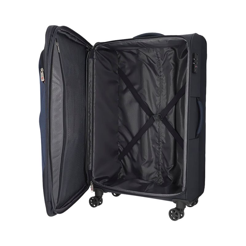 Gracias a sus medidas aproximadas de 78 x 48 x 32 cm, esta maleta ofrece una capacidad de 117 litros, suficiente para viajes largos o estadías prolongadas. Además, cuenta con sistema expansible, lo que permite optimizar aún más el espacio según tus necesidades.