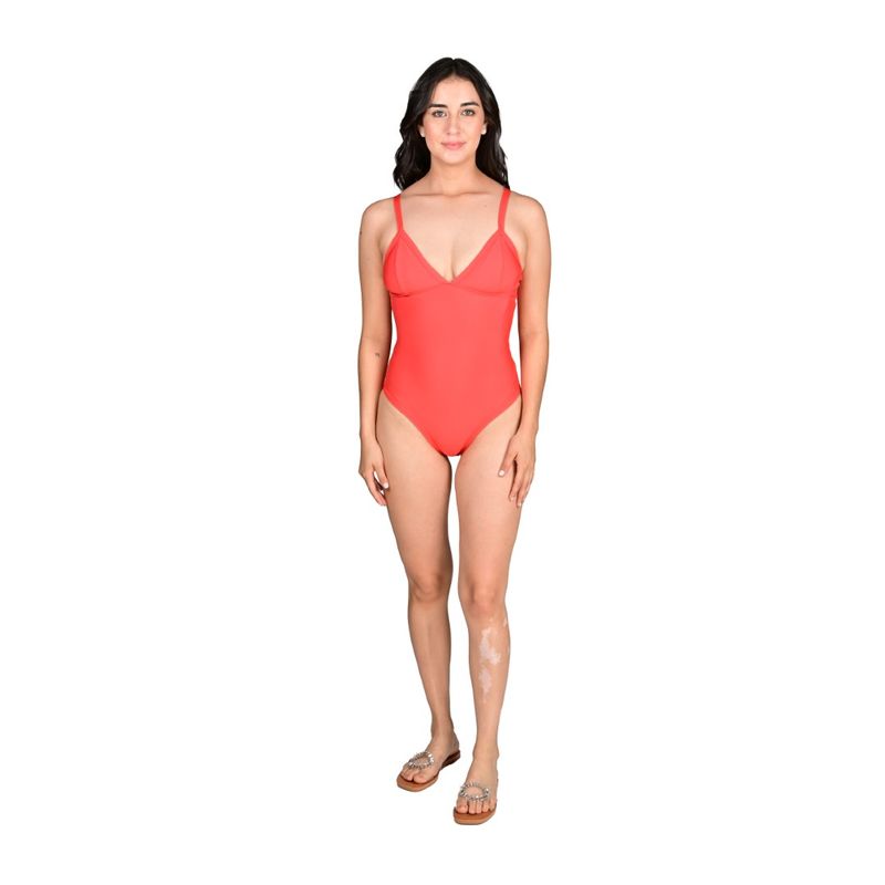 La malla enteriza para mujer Mix & Match en color rojo coral liso combina elegancia, confort y funcionalidad. Su escote en V pronunciado realza la silueta femenina, ofreciendo un look sofisticado y atractivo. Los tirantes delgados y ajustables permiten personalizar el ajuste según la anatomía de cada persona, brindando soporte sin sacrificar la comodidad. El corte clásico en las piernas asegura libertad de movimiento, haciendo de esta prenda una opción ideal para disfrutar de la playa, la piscina o momentos de relax bajo el sol.