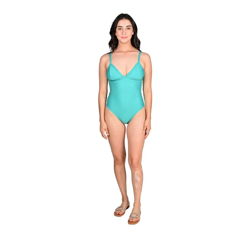 La Malla Enteriza Escote en V Verde Aqua de Mix & Match combina elegancia y comodidad para tus días de sol. Su diseño incluye tirantes ajustables y un corte de pierna medio, ofreciendo un ajuste favorecedor y seguro, ideal para disfrutar de la playa o la piscina.