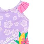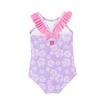 Su silueta ajustada permite total libertad de movimiento, adaptándose con suavidad al cuerpo del bebé y garantizando un calce seguro y cómodo. La combinación de tonos lilas y motivos tropicales crea una prenda alegre y versátil, perfecta para las pequeñas que disfrutan del agua y los días al aire libre.