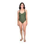 La Malla Relieve Lyon Más Cavado Verde Mujer Mix & Match es un traje de baño entero diseñado para quienes buscan estilo y confort. Presenta un escote halter con tirantes de lazo que se atan al cuello, combinando elegancia con ajuste personalizado. La espalda semi-abierta con lazada permite libertad de movimiento y un toque de sofisticación, mientras que el detalle de nudo en la zona del busto resalta la silueta de manera sutil y moderna.